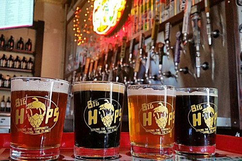 Here at Big Hops Growler Station - The Bridge, you will find yourself served by friendly staff. With a great selection of craft beer, which is priced reasonably, this is a nice place to have fun with friends and dogs and chill on the patio.